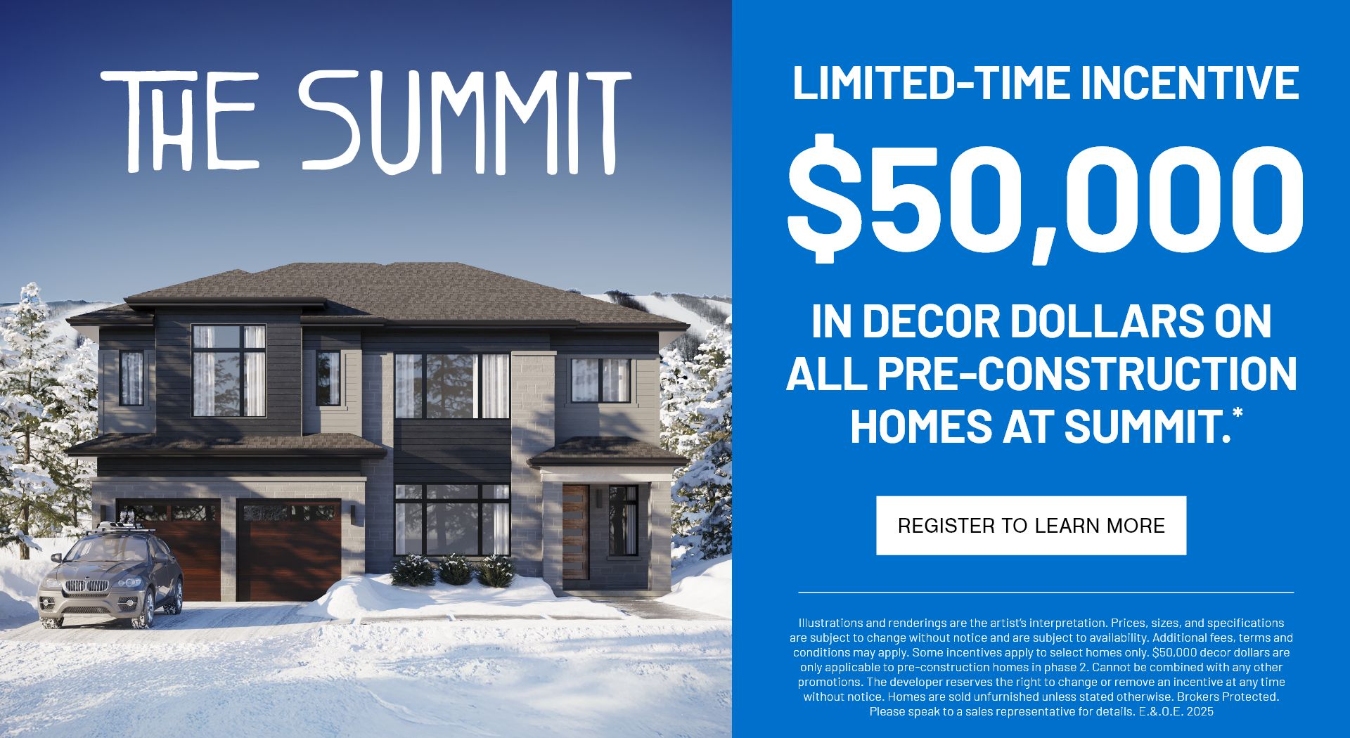 Set on ultra-deep estate lots, these 54’, 60’, and 64’ detached chalet-style residences blend elegant design with seamless indoor-outdoor living, inviting you to savour the best of four-season adventure. From private ski slopes and championship golf courses to tranquil lakeside escapes, The Summit is where every season is extraordinary. A limited collection of bungalow is now available.